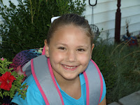 Maddy started kindergarten at Grimes on August 19th. She wasn't so sure about going all day when they started, but she loves it! They are reviewing letters and learning what sound they make, so she has been trying to read to me. She loves taking her lunch, can't say I blame her some days! So far she has stayed on purple (they have a color system for their behavior, purple means she hasn't gotten into any trouble), we will see how long she can stay on purple though, because we all know how much she loves to talk! Madison's teacher is also very nice, so I think she is going to have a great year of kindergarten!